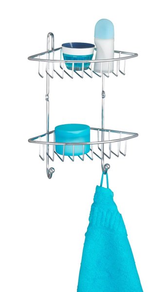 Dva další háčky umožňují zavěsit ručníky atd. Dekorativní rohový stojan má obzvlášť robustní a pevnou konstrukci. Montážní materiál (šrouby a hmoždinky) je součástí dodávky.