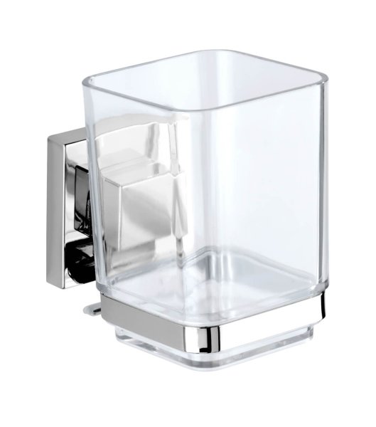 Vacuum-Loc® Bez Vrtání vytváří další prostor na okraji umyvadla a lze jej rychle a snadno připevnit na zeď. Odnímatelná, průhledná sklenice je vyrobena z vysoce kvalitního robustního plastu a snadno se čistí.