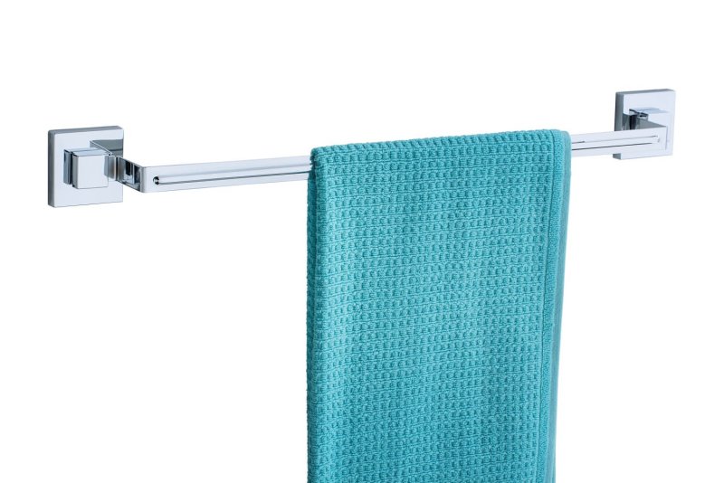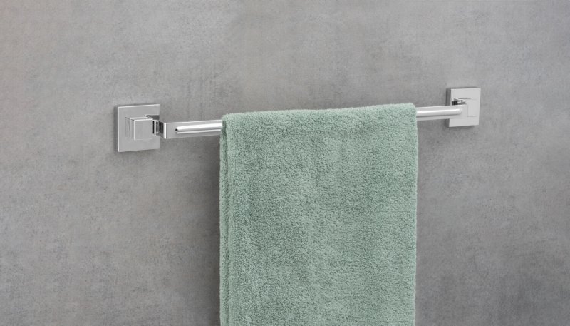 Elegantní držák na ručníky Uno Quadro nabízí dostatek místa pro dva ručníky nebo jednu osušku na dlouhé závěsné tyči. Každý ručník tak může řádně vyschnout a držák na ručníky se stane skutečným poutačem.