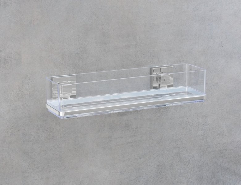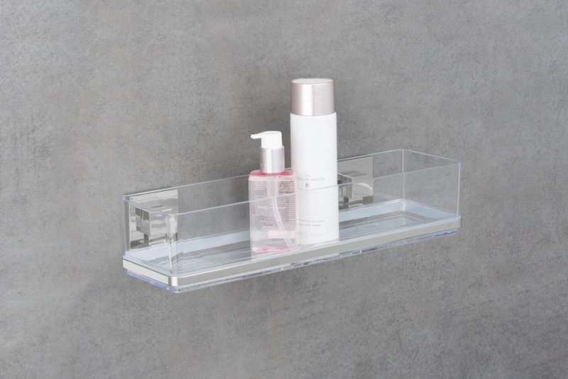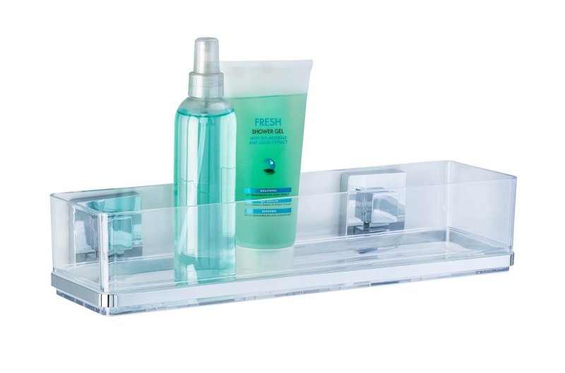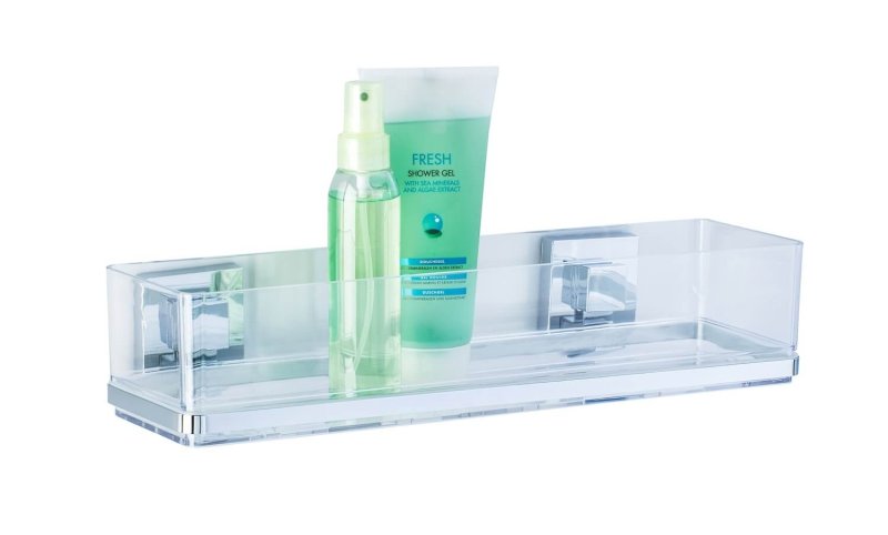 - WENKO Nástěnná police 1 patro BEZ VRTÁNÍ VacuumLoc QUADRO průhledná 9x39x15 cm