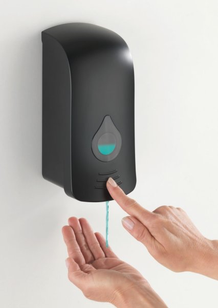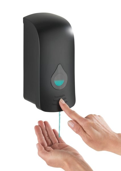 Dávkovač mýdla nekape a snadno se čistí a plní. Zbytkové množství je vždy snadno viditelné přes průhledné okénko v kombinaci s módní černou povrchovou úpravou.