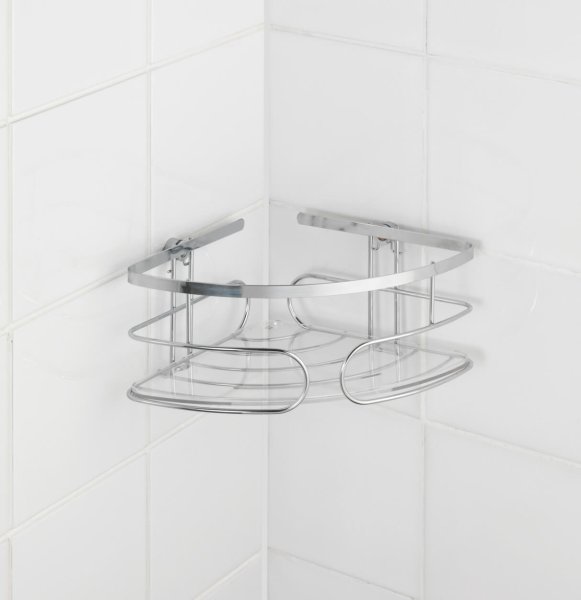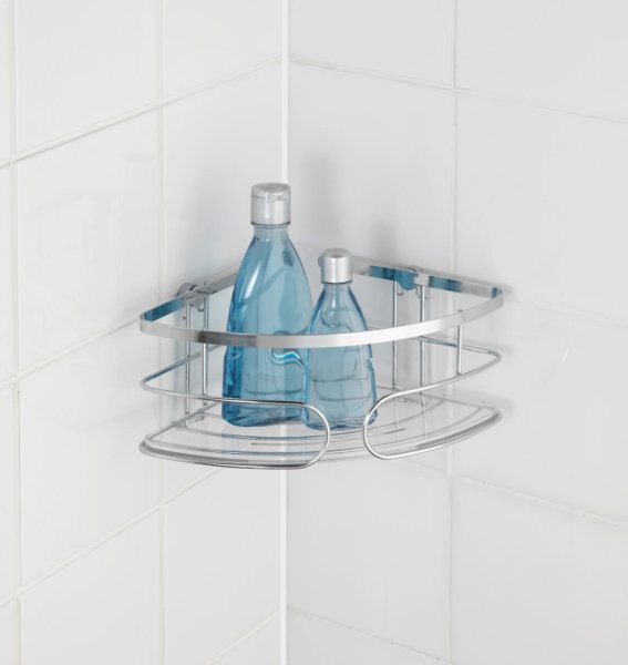 - WENKO Rohová polička BEZ VRTÁNÍ Premium kovově lesklá 10x27x19 cm