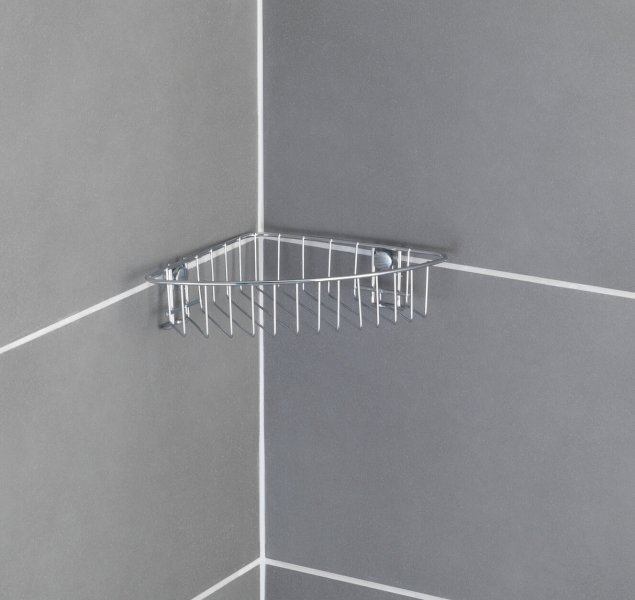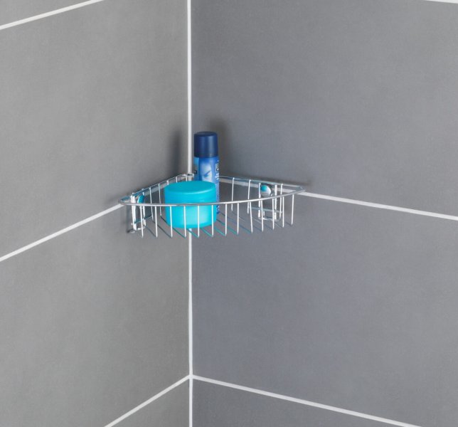 - WENKO Rohová polička BEZ VRTÁNÍ Classic kovově lesklá 6x27x20 cm