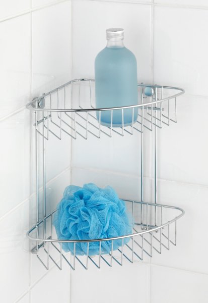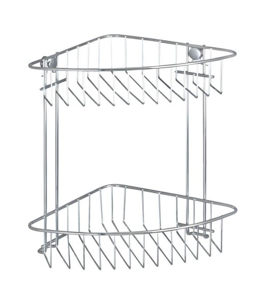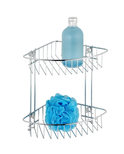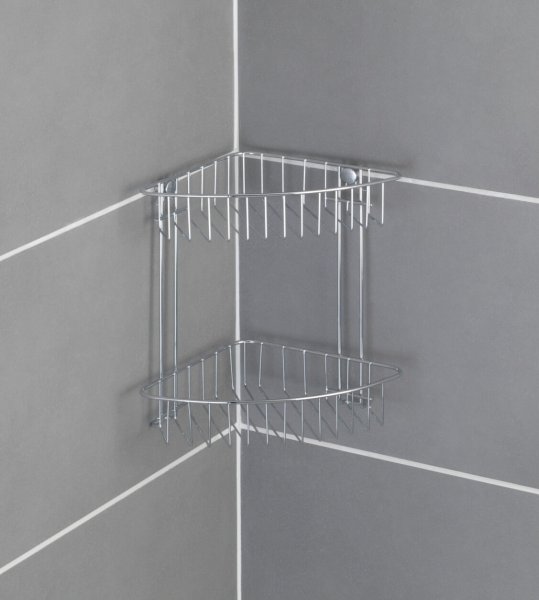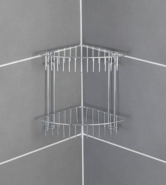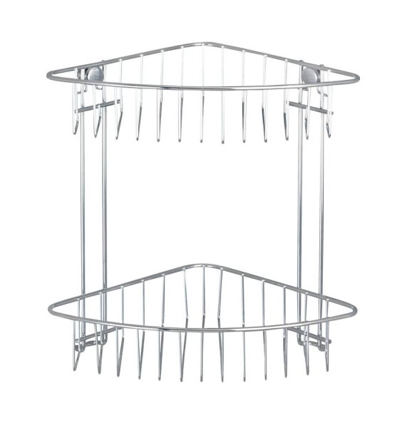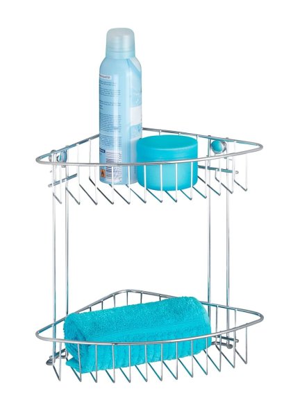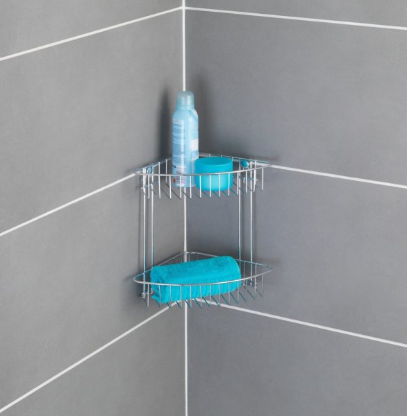 - WENKO Rohová dvoupatrová polička BEZ VRTÁNÍ Classic kovově lesklá 27x27x20 cm