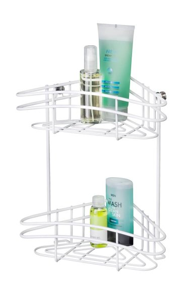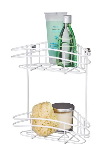 - WENKO Rohová dvoupatrová polička BEZ VRTÁNÍ Classic Plus bílá 33x29x18 cm