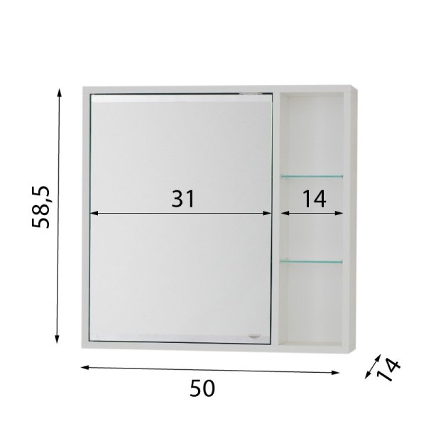 - 50× 58,5× 14 cm (šířka× výška× hloubka)