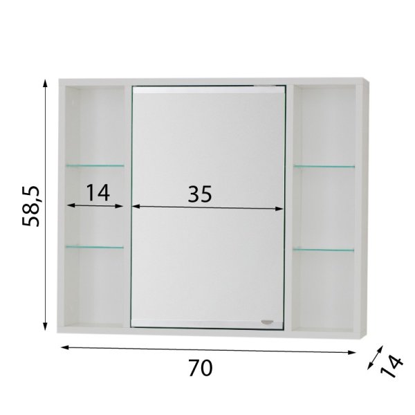 - 70× 58,5× 14 cm (šířka× výška× hloubka)