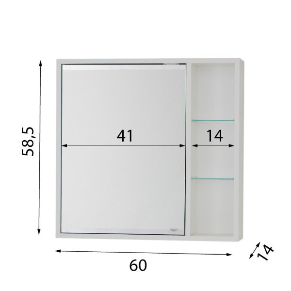 - 60× 58,5× 14 cm (šířka× výška× hloubka)