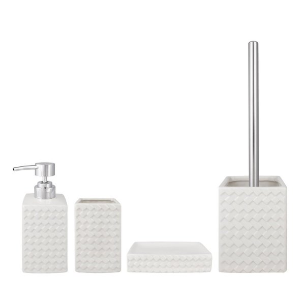 Série PLEDO je tvořena kelímkem, mýdelníkem, WC štětkou a dávkovačem mýdla.