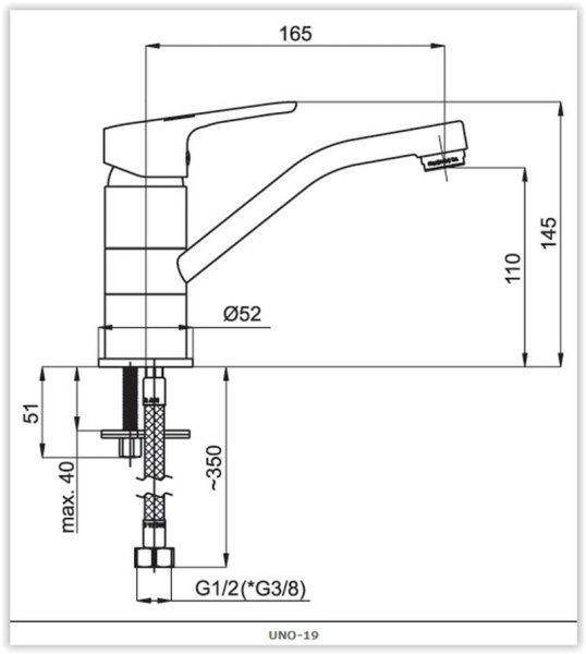 Umyvadlová stojánková vodovodní baterie UNO-19 vyniká vysoce kvalitním zpracováním a spolehlivou funkčností všech součástí a materiálů.