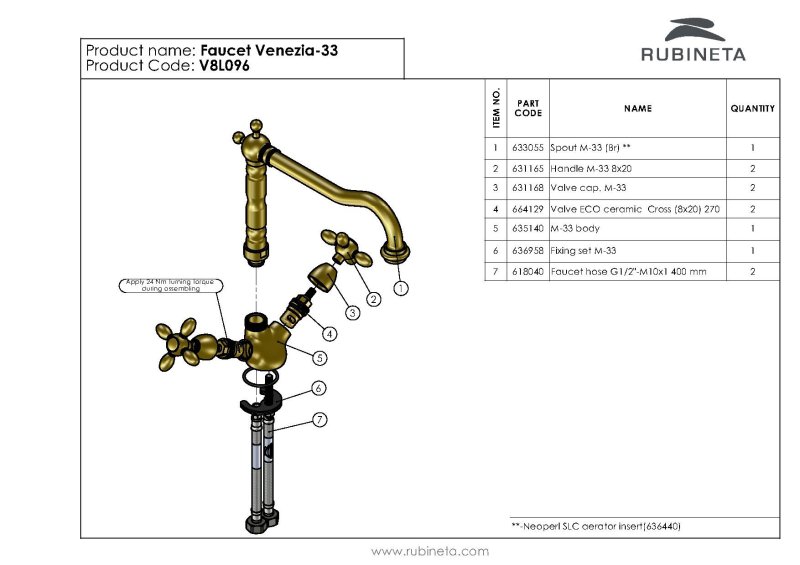Vysoce kvalitní materiály a stále oblíbený retro design v bronzové barvě, nabízí dřezová kuchyňská baterie série VENEZIA. Velmi kvalitní německé keramické ventily Flűhs, ventil otočný o 270°. Funkce ECO stop pro úsporu vody. Všechny díly odpovídají předpisům EN817. Všechny výrobky jsou 100% testovány.