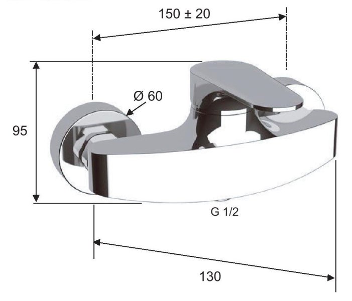 Nástěnná sprchová baterie je dodávána bez příslušenství.