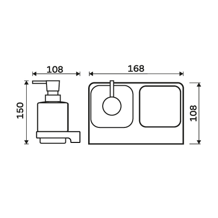 Dvojitý nástěnný držák na keramický dávkovač mýdla a pohárek na zubní kartáčky. Bílé keramické nádobky v kombinaci s chromovaným držákem perfektně ladí prostoru u umyvadla. Díky montáži na zeď je údržba umyvadla mnohem jednodušší. Dávkovač mýdla s