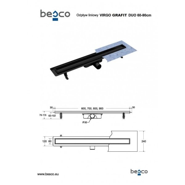 Kvalitně a moderně zpracovaný odtokový žlab. Tělo žlabu i vlastní rošt je vyroben z velice kvalitní nerezi a jsou oba s povrchovou úpravou v grafitové barvě. Rošt lze použít buď pro vložení dlažby, nebo jako pohledový (grafitová barva). Tento žlab obohatí každou koupelnu o nádech luxusu. Sada obsahuje: žlab se sifonem a nožičkami, rošt a hydroizolační pásku.