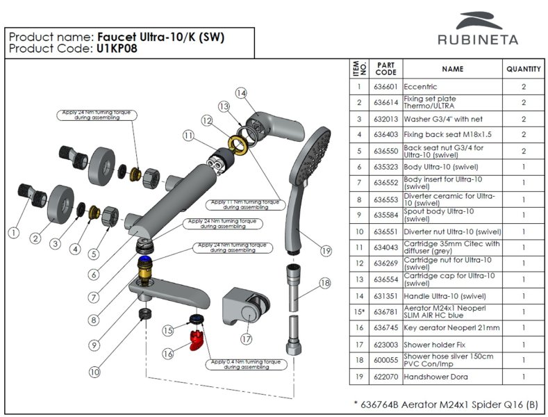 - Odlévané tělo těchto vodovodních baterií je vyrobeno ze speciálně upravené korozivzdorné mosazné slitiny RubiBrass. Je odolná a bezpečná pro lidské zdraví a životní prostředí. RubiBrass má méně olova a dalších nepotřebných sloučenin, které mohou reagovat s pitnou vodou.