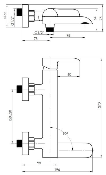Vanová nástěnná vodovodní baterie ULTRA U-10/K NEW CHROM vyniká vysoce kvalitním zpracováním a spolehlivou funkčností všech součástí a materiálů.