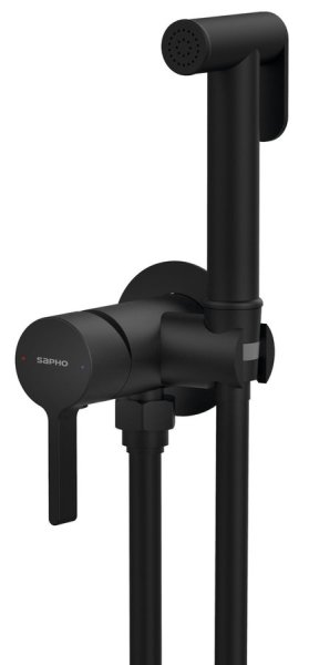 - Sapho ICONIC podomítková bidetová baterie se Stop sprškou, kulatá, černá mat (AF040B)