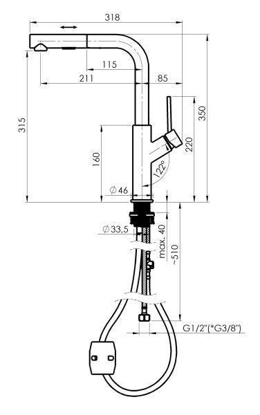 - Vytahovací hadice s 2-polohovou sprškou a kvalitním perlátorem