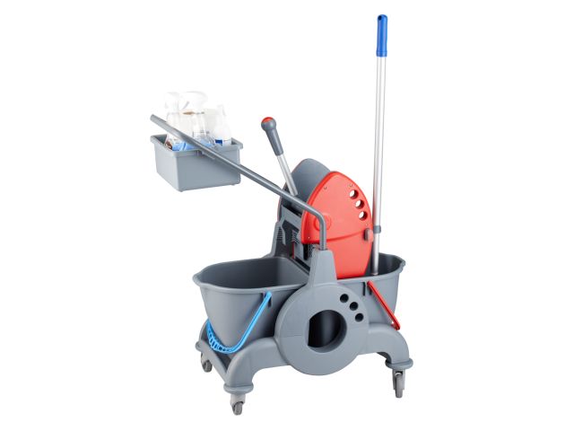 - Merida HFV101 - Úklidový vozík dvoukbelíkový 2x15L + box 8l, červený ždímač mopu