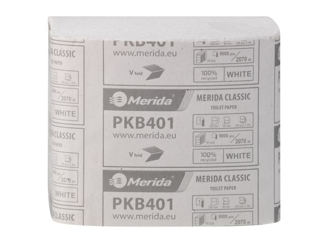 - Merida PKB401 - Toaletní papír skládaný CLASSIC, bílý, jednovrstvý, karton/9000 ks, ECOLABEL