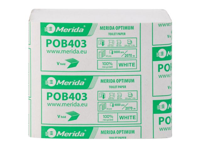 - Merida POB403 - Toaletní papír skládaný OPTIMUM, bílý, dvouvrstvý, karton 9000 ks, ECOLABEL