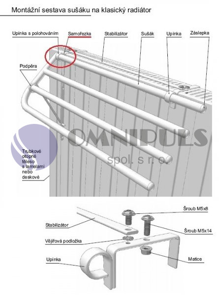 - Sušák na 5 ručníků, délka 60 cm, k instalaci na litinový radiátor.