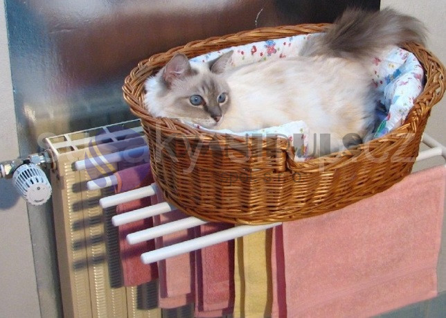 - Sušák na 3 ručníky, délka 60 cm, k instalaci na litinový radiátor.