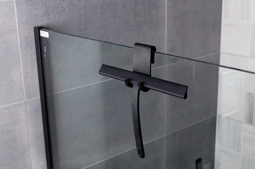Stěrka na sklo SAT v černém provedení je praktickým doplňkem pro každou koupelnu. Tato stěrka je vyrobena ze silikonu, což zajišťuje její odolnost a flexibilitu při používání. Dodává se včetně závěsného háčku, který umožňuje snadné zavěšení stěrky přímo ve sprchovém koutě. Díky svému elegantnímu designu a praktickému použití je ideální pro udržení skleněných ploch čistých a bez šmouh.