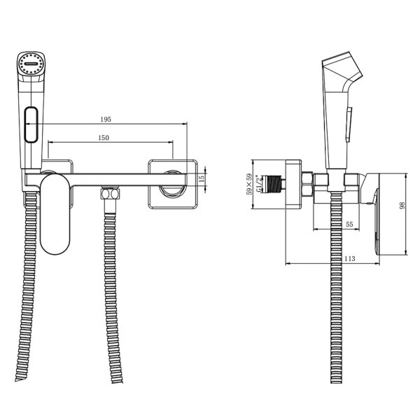 Nástěnná bidetová baterie se Stop sprškou a poličkou, černá mat (TJ042B)