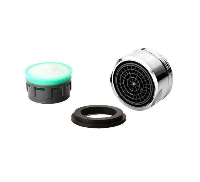 Omezení průtoku vody na 8 litrů za minutu při tlaku 3 bary. Plastová objímka se závitem M 24 x 1 a chromovou povrchovou úpravou. Plastová vložka je zárukou snadného čištění při usazení vodního kamene. Těsnění je součásti balení.