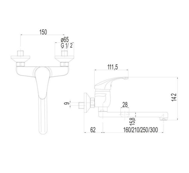 - MEREO CB30202N Sonáta, dřezová nástěnná baterie, 150 mm, s ramínkem plochým rovným 160 mm
